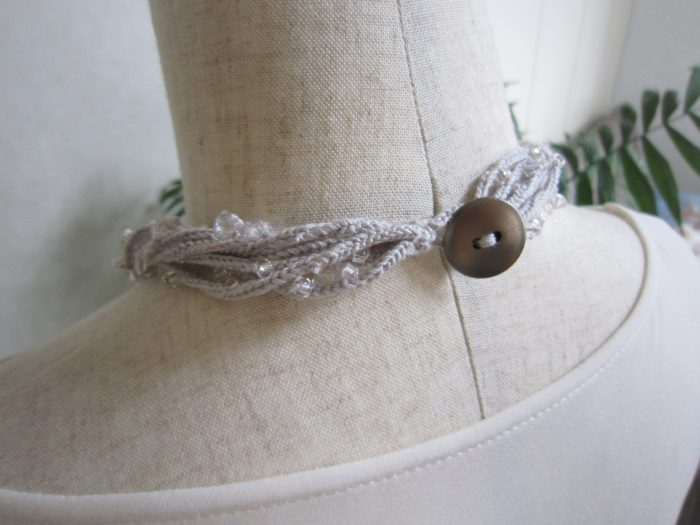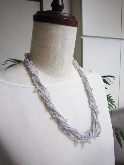 ビーズ編み込みネックレス(グレー) / アクセサリー
